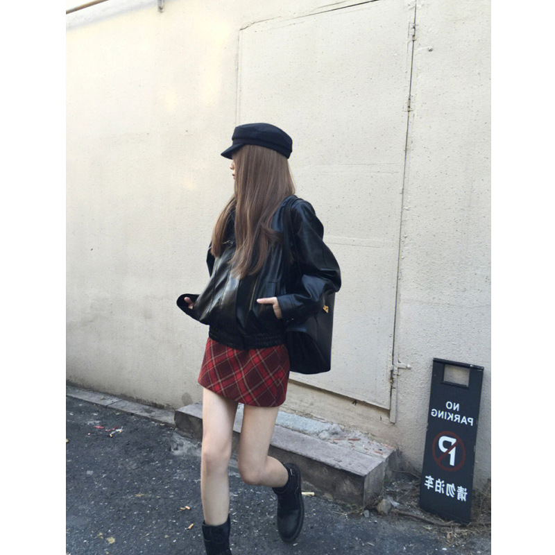 2024新型レトロな赤いチェック柄のスカートの女性の大きいサイズのデザイン感があります。
