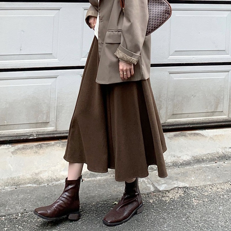 大きいサイズの太ったmmの毛はカレー色の半身のスカートの女性の秋冬の2024の高い腰の傘のスカートの百タックのa字の長いスカートは股のスカートを遮ります