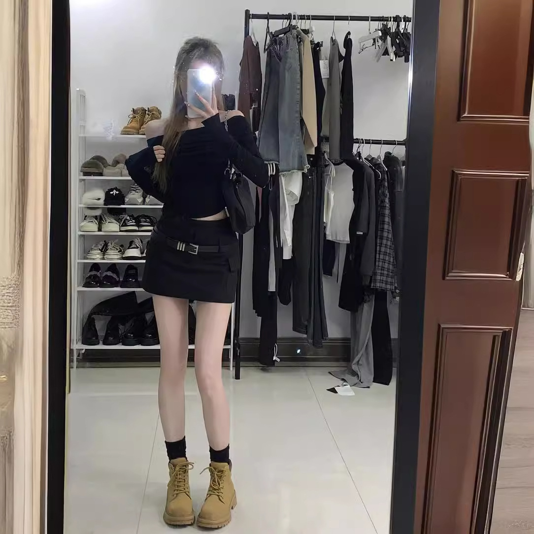 大きいサイズの工装の半身のスカートの女性の夏のアメリカの復古のスカートの高腰のギャルのミニスカートのA字の黒色のヒップのスカート