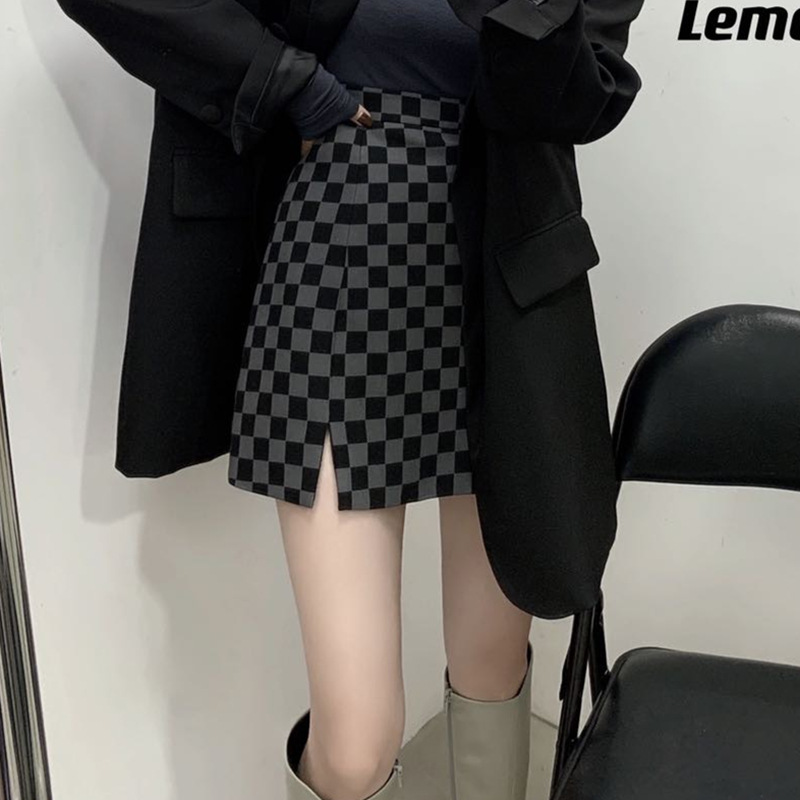 太った妹の大きいサイズの棋盤の格のa字の半身のスカートの女性の2024の新型の高腰のフォークのスカートはやせている包みのヒップのスカートの夏を現します。