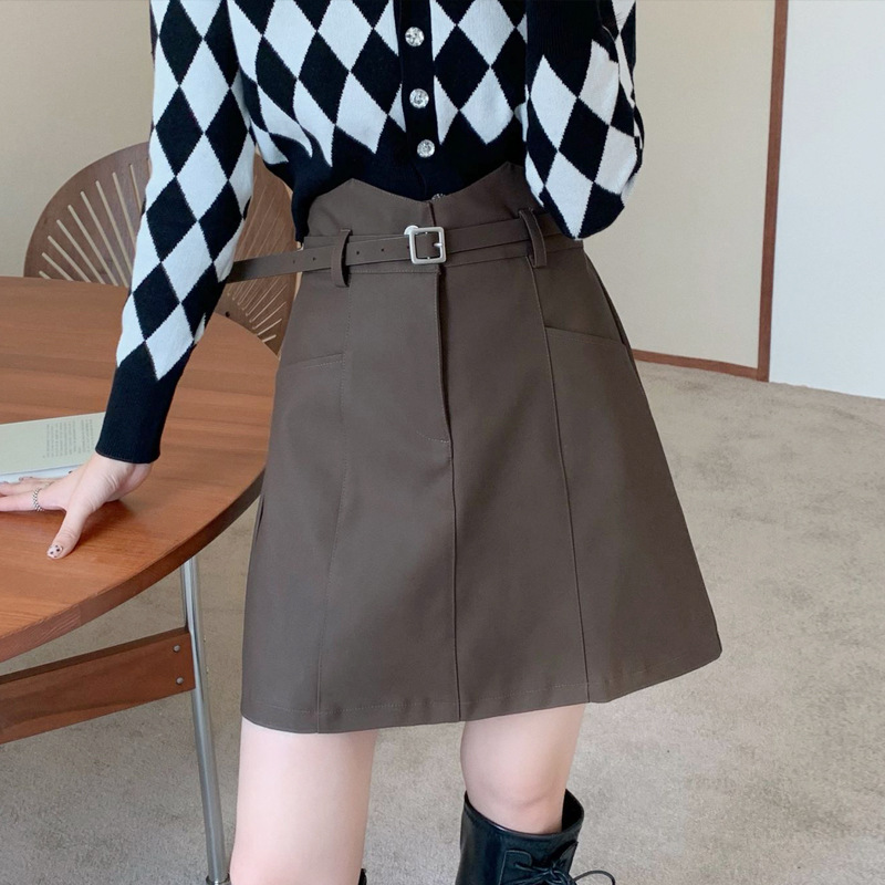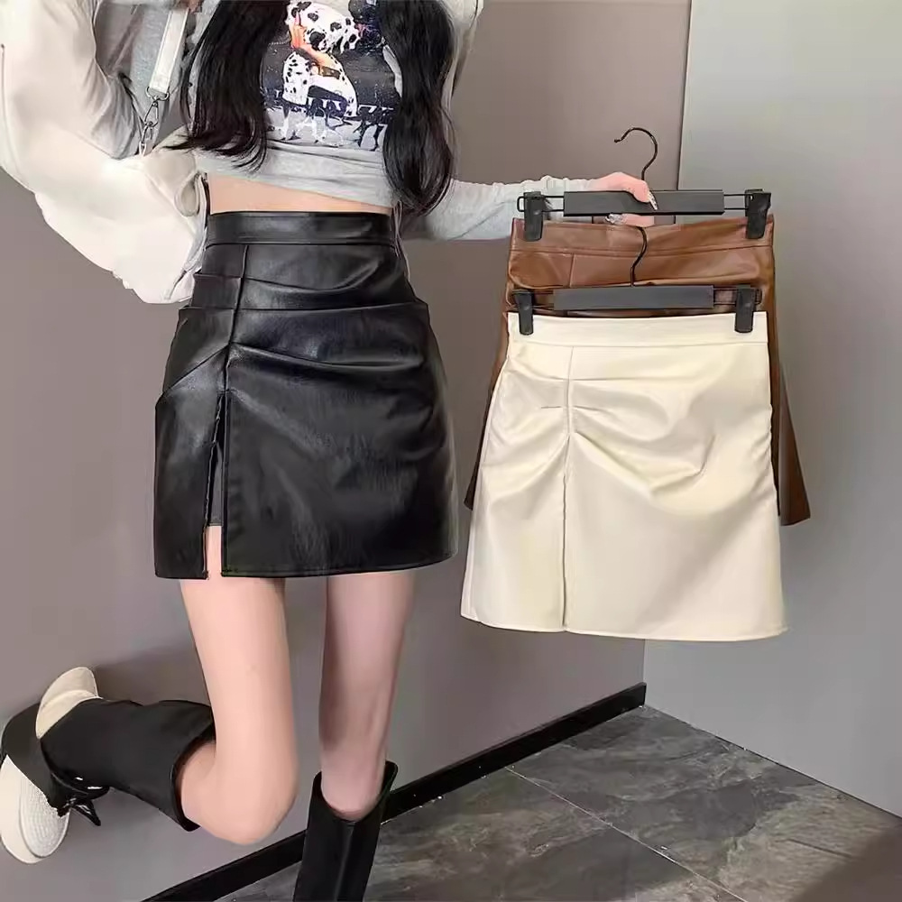 大きいサイズの太ったmmの皮のスカートの半身のスカートの女性の秋の2024の新型の高い腰は股のa字のスカートを遮ります。