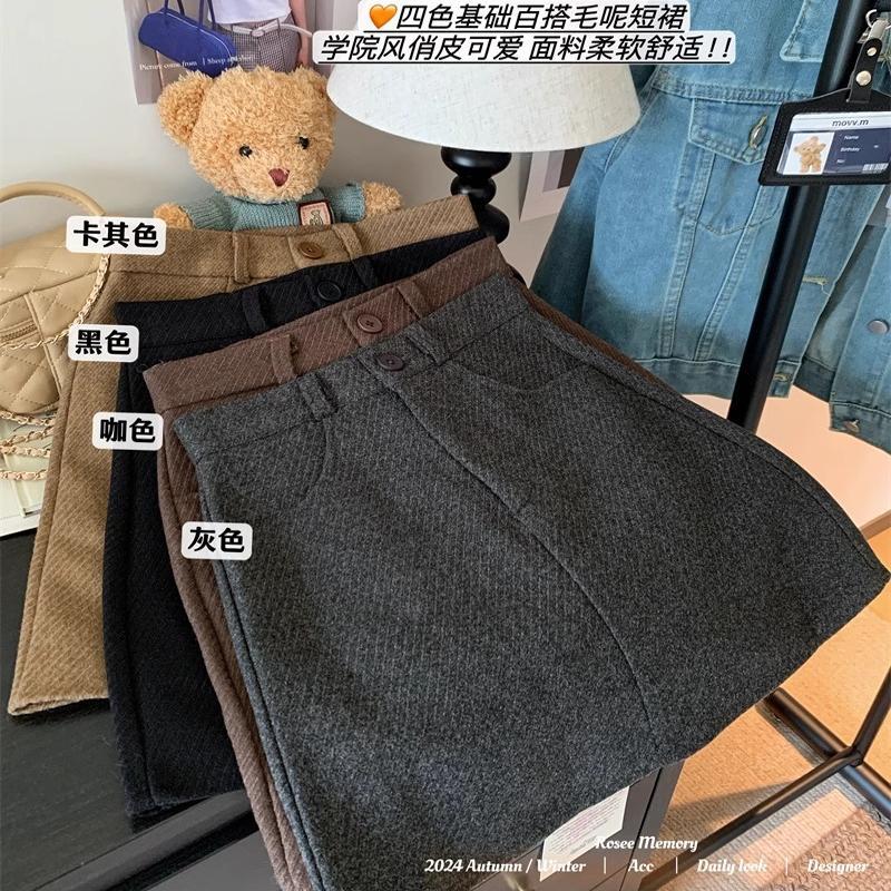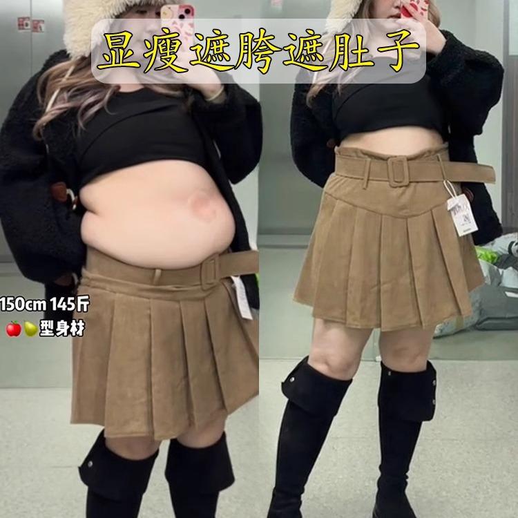 カーキ色のコーデュロイのスカートの半身のスカートの女性の秋冬の大きいサイズの小さい背は腹を遮って腰が高くて痩せています。