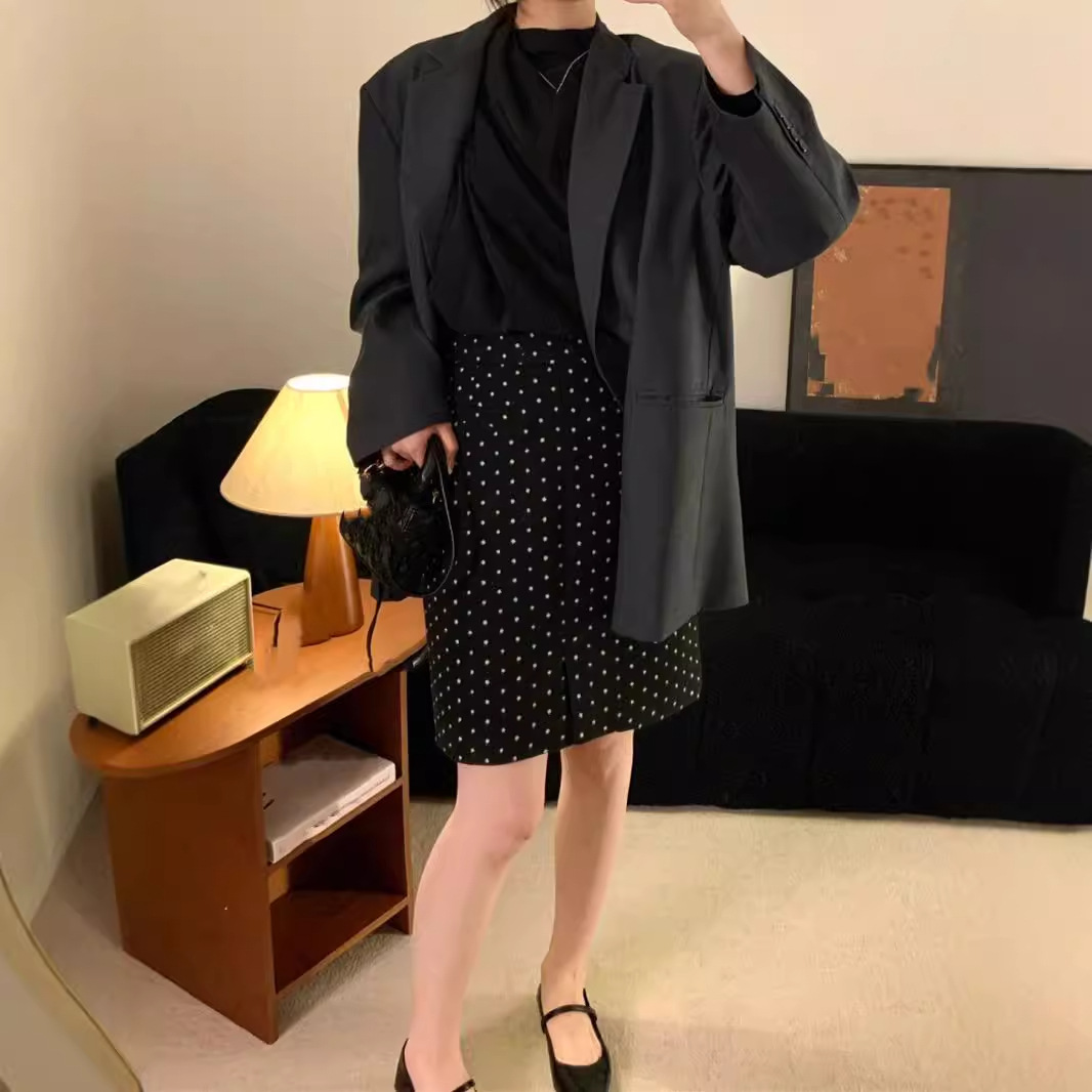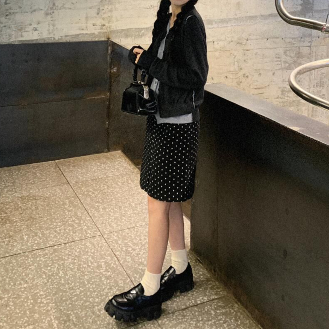 大きいサイズの太ったmmの黒い波の点の半身のスカートの女性のカジュアルなシンプルなハイウエストはやせています。