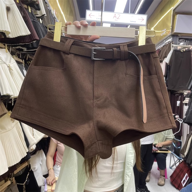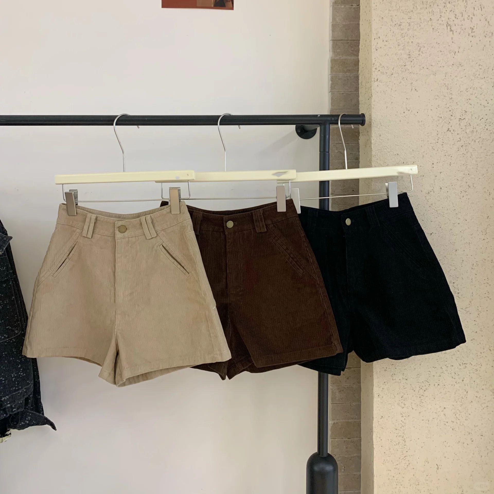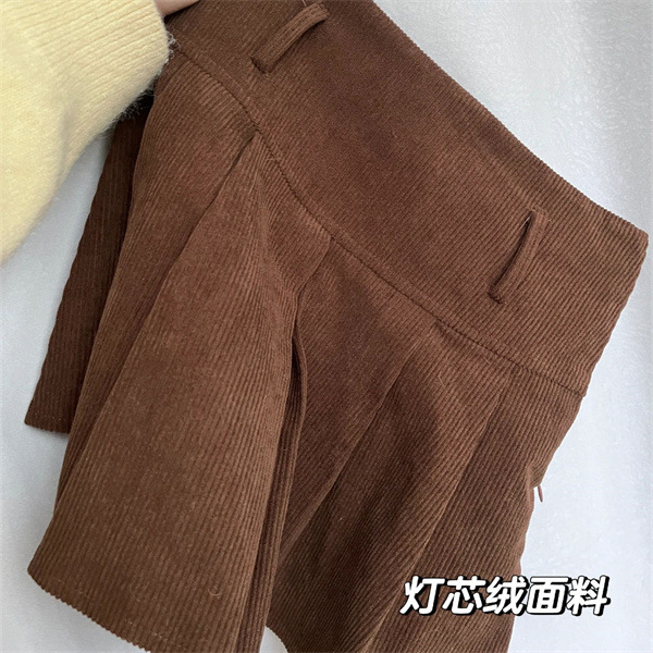 大きいサイズのコーデュロイの半ズボンの女性の2024秋冬の高腰は尻のギャルの外で靴のズボンの太っているmmの茶色の底のズボンを包みます。