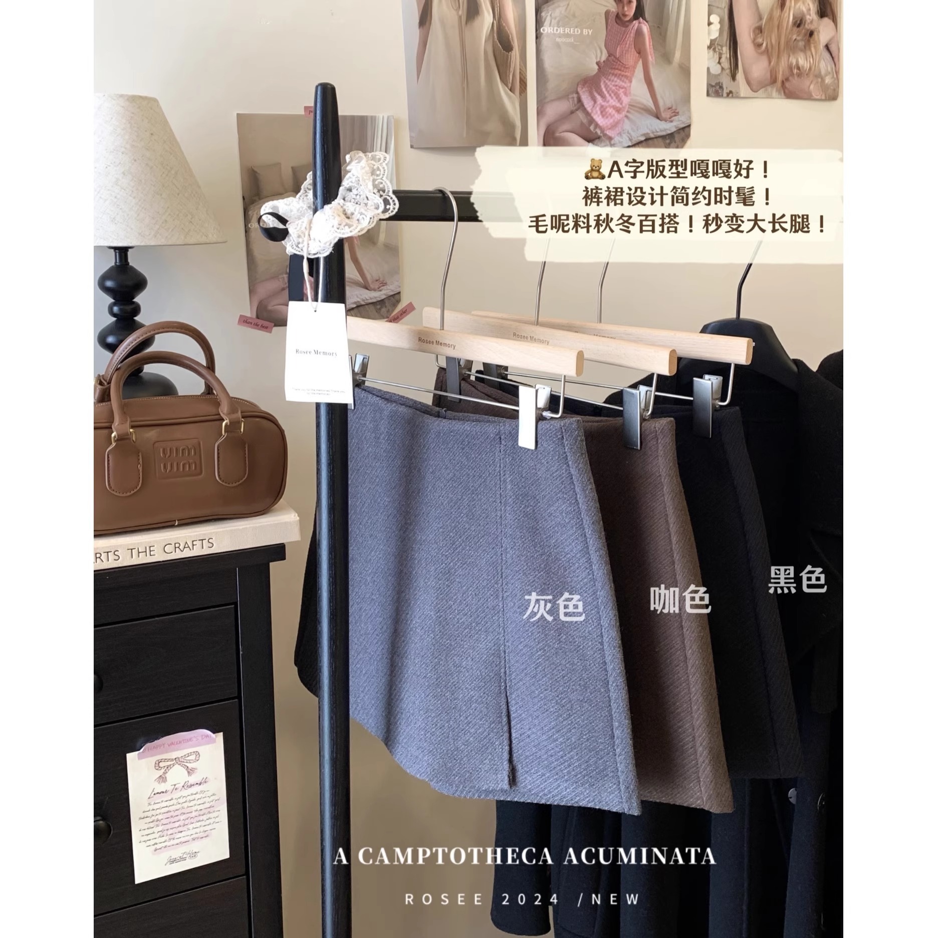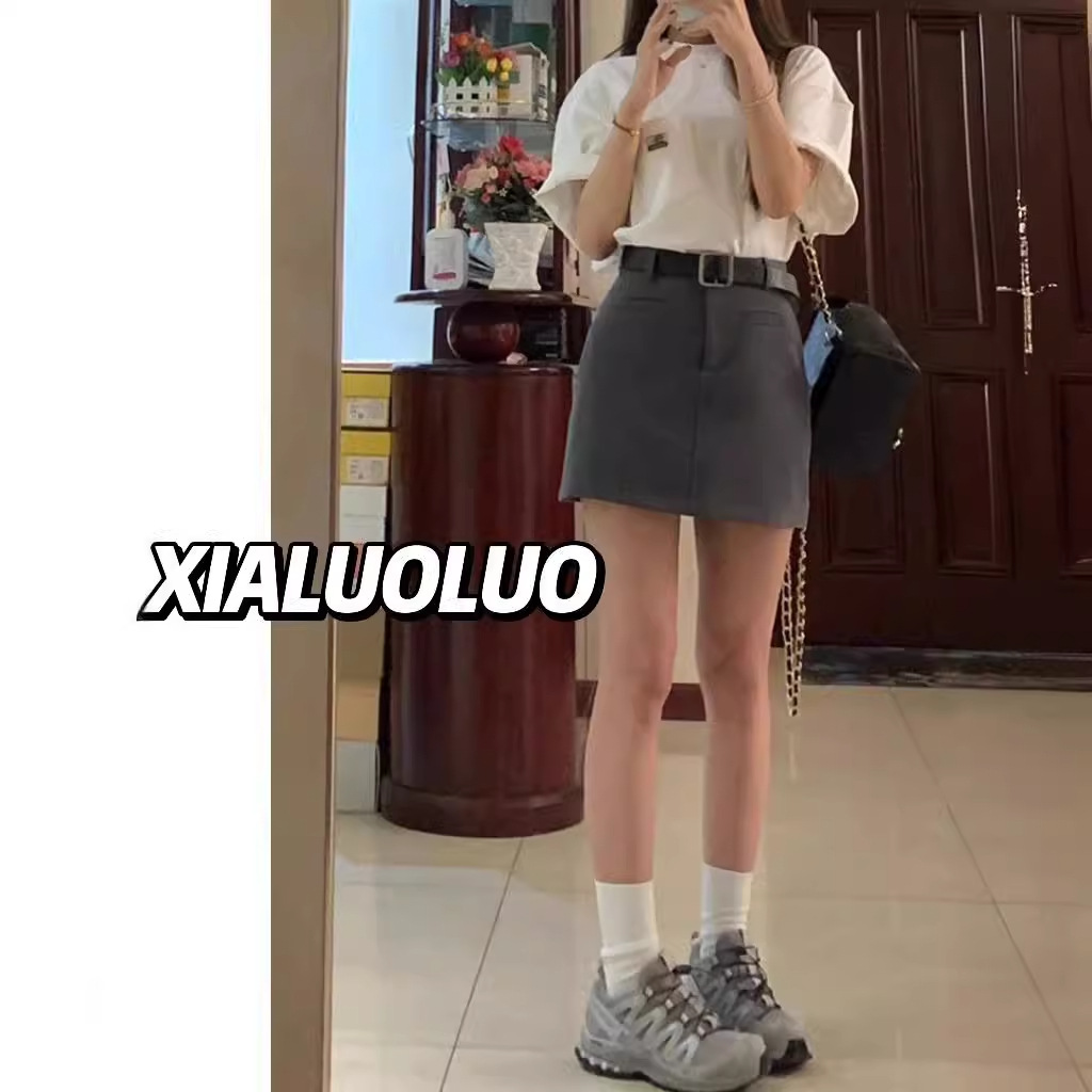 ダークグレーのスーツ風ショートスカート、ハイウエスト、秋の新作、大きいサイズ、ぽっちゃりさん向け、小柄さん向け、Aライン、ヒップを包み込むスカート
