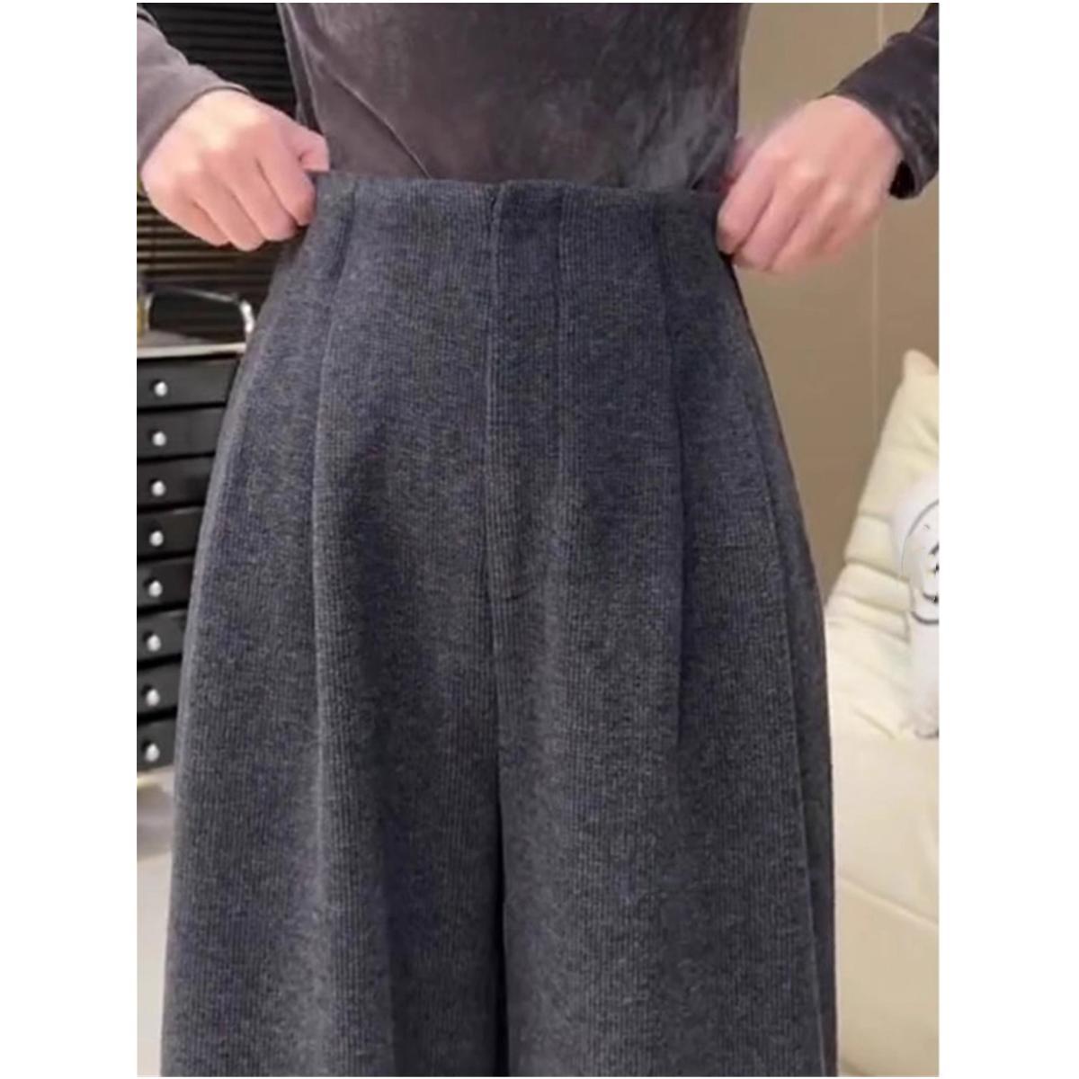 濃い灰色のカジュアルパンツの女性2024秋冬の新型の厚い高級感の大きいサイズはやせています。