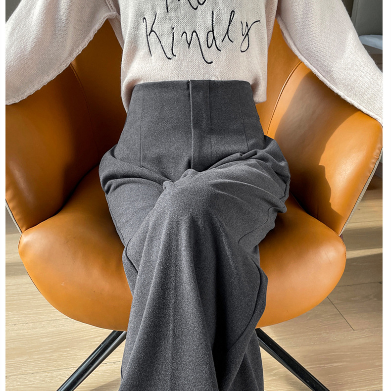 グレーの毛はストレートのスーツのズボンの女性の大きいサイズの秋冬の2024高腰はやせていてゆったりしています。
