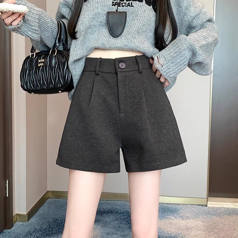 カジュアル半ズボン女性2024年夏新型韓国版ins港味レトロシンプル外着ハイウエストa字ワイドパンツ
