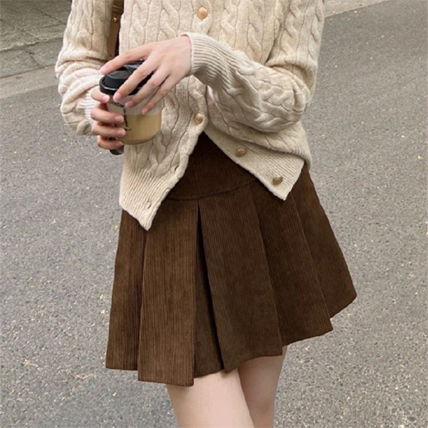大きいサイズの太ったmmのコーデュロイの半身のスカートの女性の秋の韓系の高い腰の百のしわのスカートの子は光を防ぐために股のa字のスカートを遮ります。