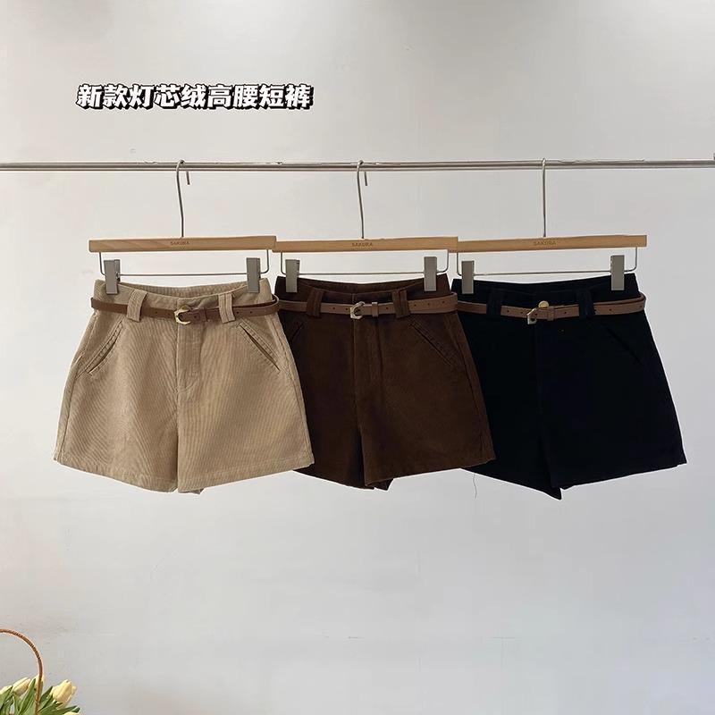 レトロな香港風のコーデュロイの半ズボンの女性の大きいサイズの秋冬の厚い靴のズボンの高い腰の広い足はやせていることが見えます。