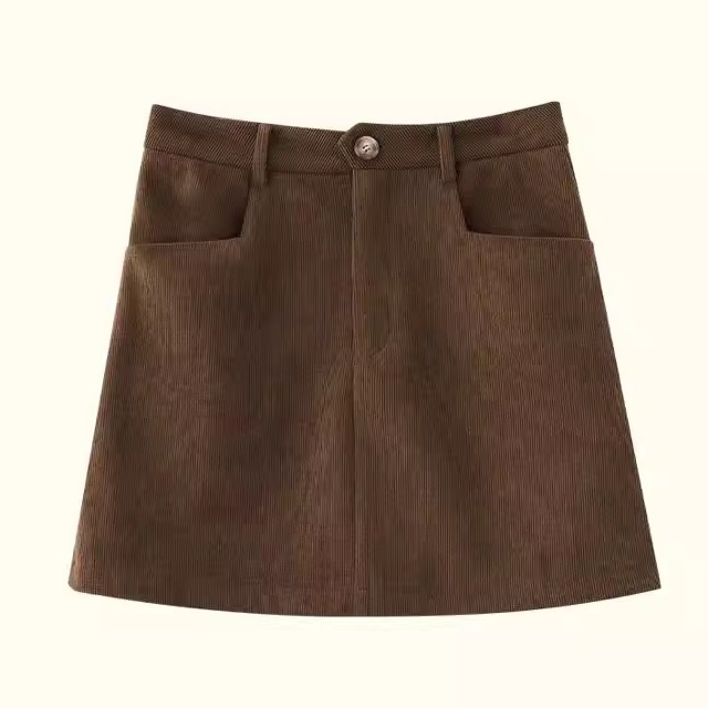 コーデュロイa字半身スカート女性秋冬大サイズ太ったmm高腰がやせて見える茶色のスカート