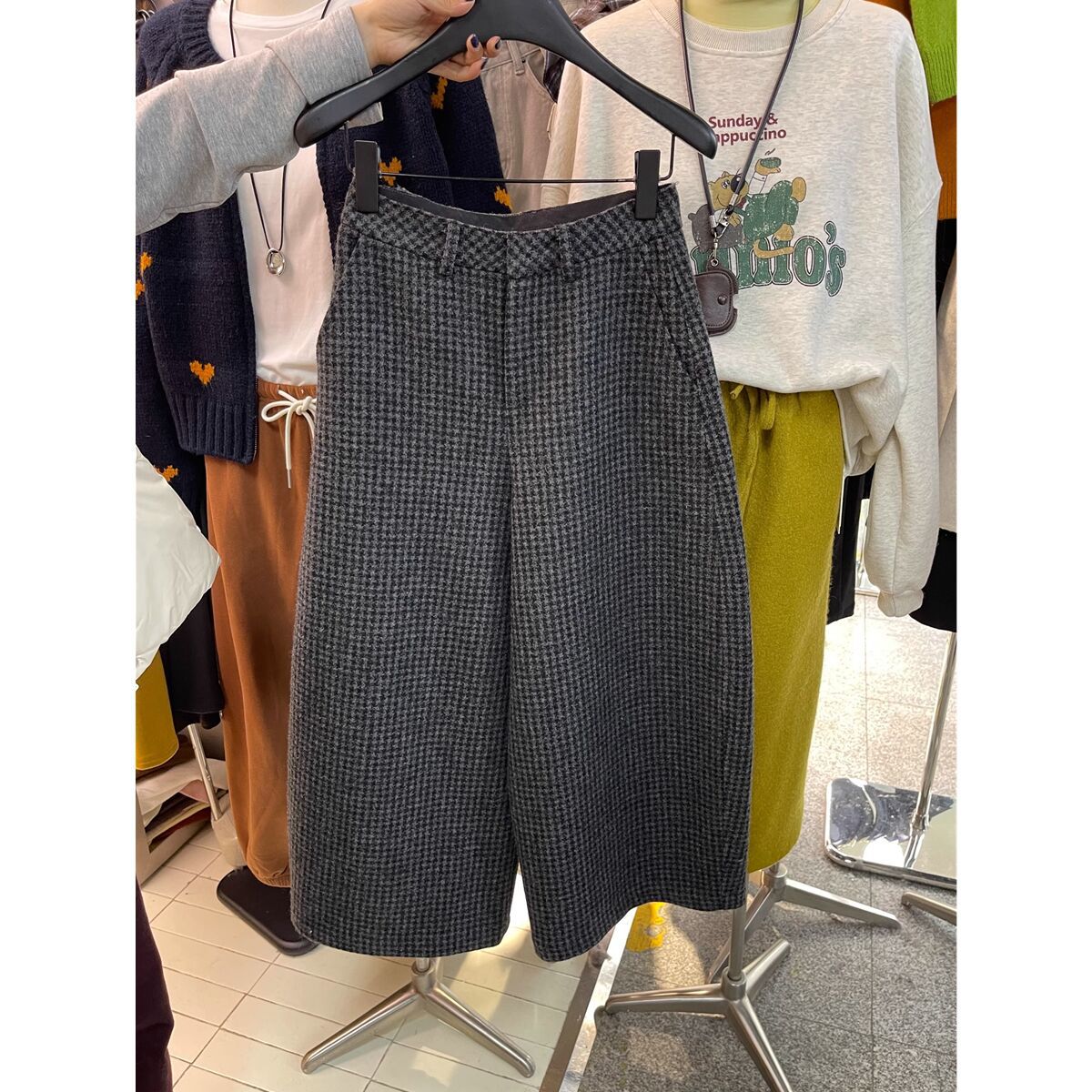 大きいサイズの韓国版の高級はやせている格子の毛を現します。