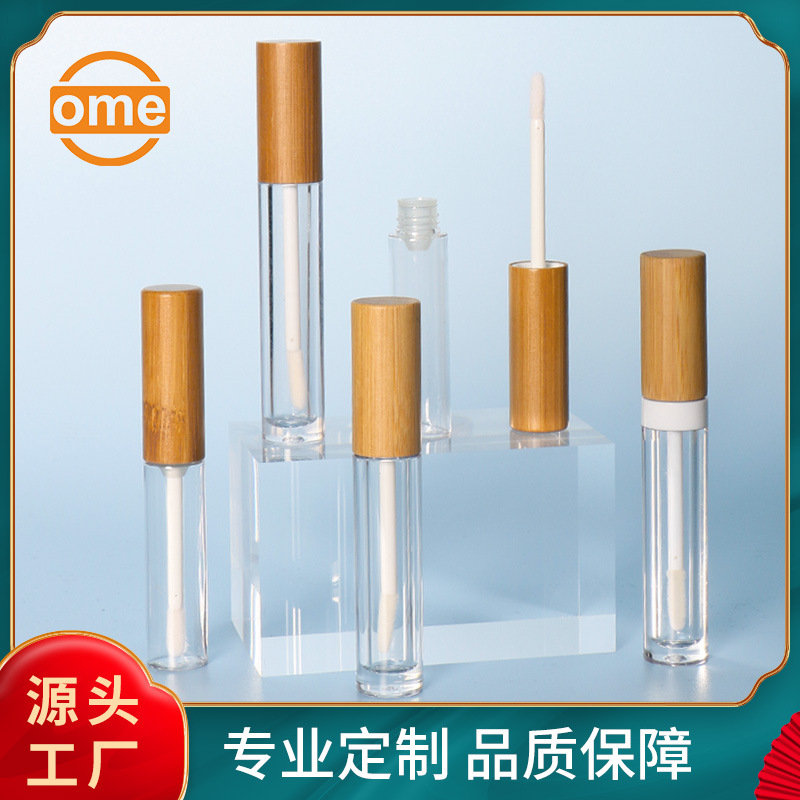 新しいボトル竹木蓋リップカラー管包装材円形透明唇釉薬管卸売りコンシーラー