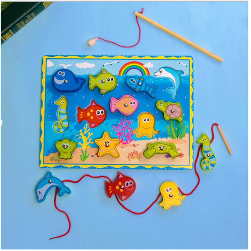 子供磁気釣りおもちゃ男女子供赤ちゃん蒙氏早教パズル2-5歳子供積み木