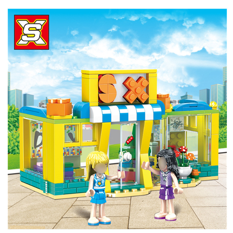 翔xj都市商業街景建築積み木子供の組み合わせ小粒積み木子供の小粒おもちゃ