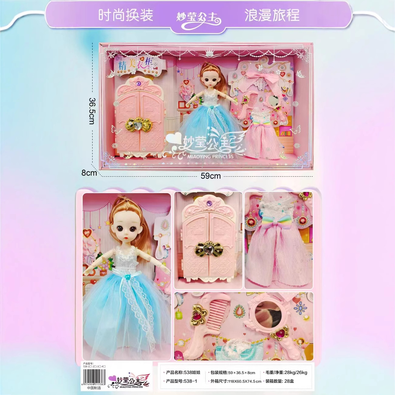 教育機関入学ギフト卸売プリンセスメイナ絶妙な人形セット女の子ドレスアップ人形おもちゃギフトボックス