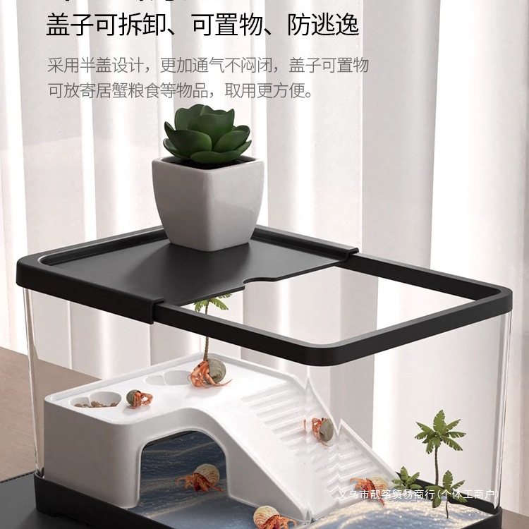 タラバガニ生態造園水槽、テラス付き、脱走防止カメ水槽、小型別荘観賞用ガニ、チリガニ飼育水槽