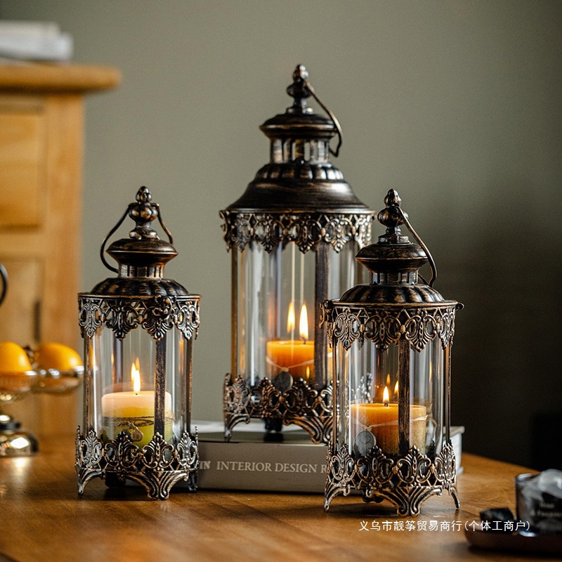 レトロな鉄の風ランプヨーロッパ燭台装飾品屋外キャンプ防風ランプロマンチックなキャンドルライトディナー装飾オフィス