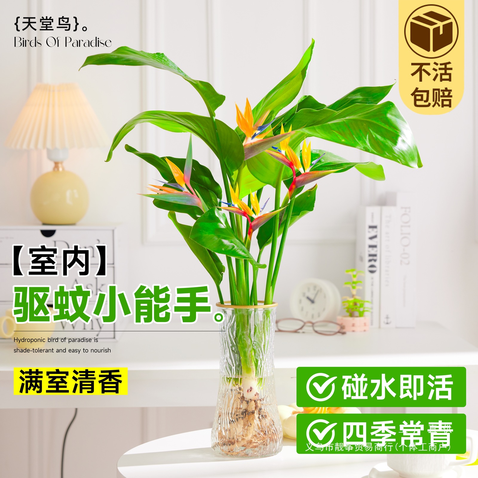 極楽鳥水耕植物、オーガンザフラワー、苗木、鉢植え、屋内リビングルーム、緑の植物、四季を通じて維持しやすい、ホルムアルデヒドを吸収します。