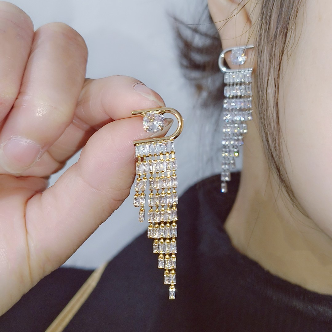 キラキラ爪チェーン流蘇ピアス女ins潮軽豪華な高級感イヤリングイヤリングイヤリング清気質小衆デザイン