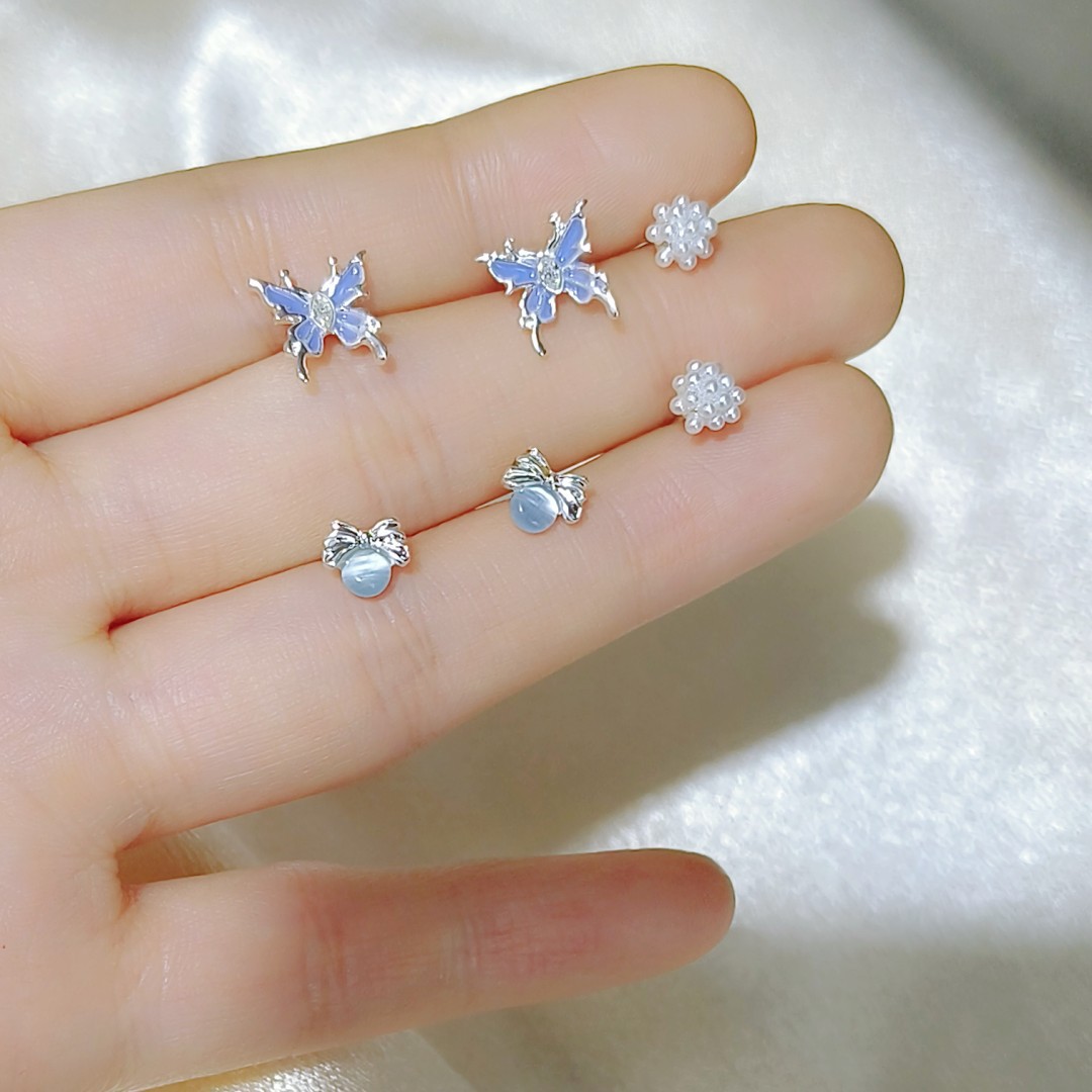 小清新六点セットピアス ~ ins潮気質ファッション個性星空青蝶イヤリング小型百合耳飾り