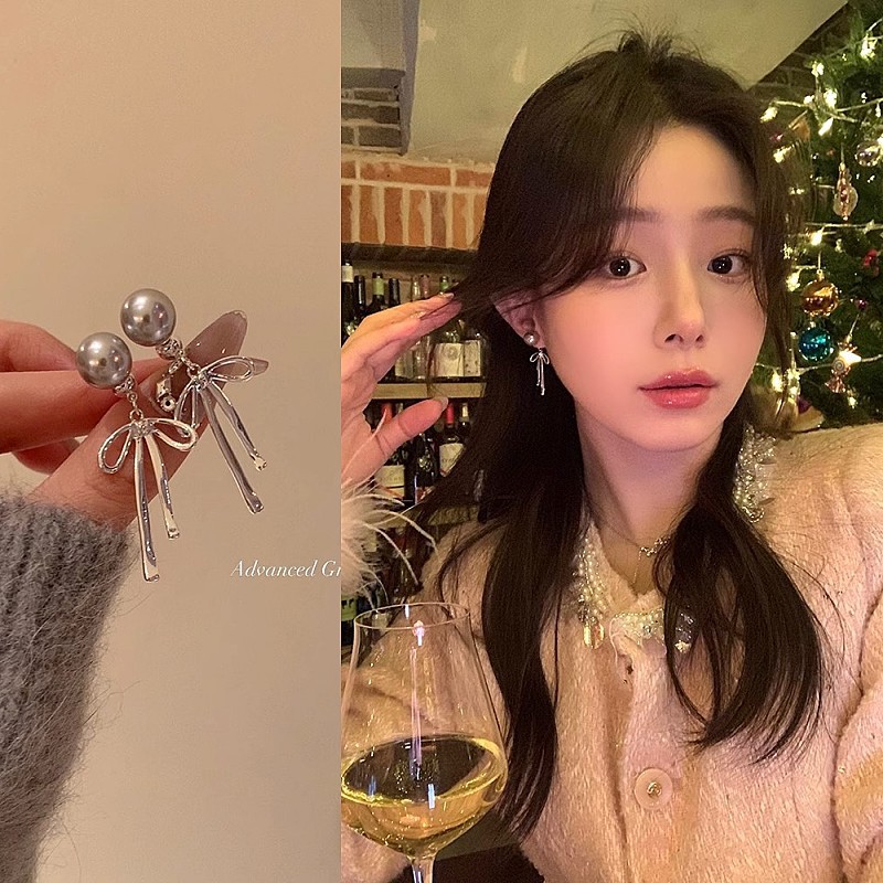 両戴式の灰色の真珠のイヤリングの女性の蝶結びのイヤリングの新型の2023秋冬感の千金のイヤリング
