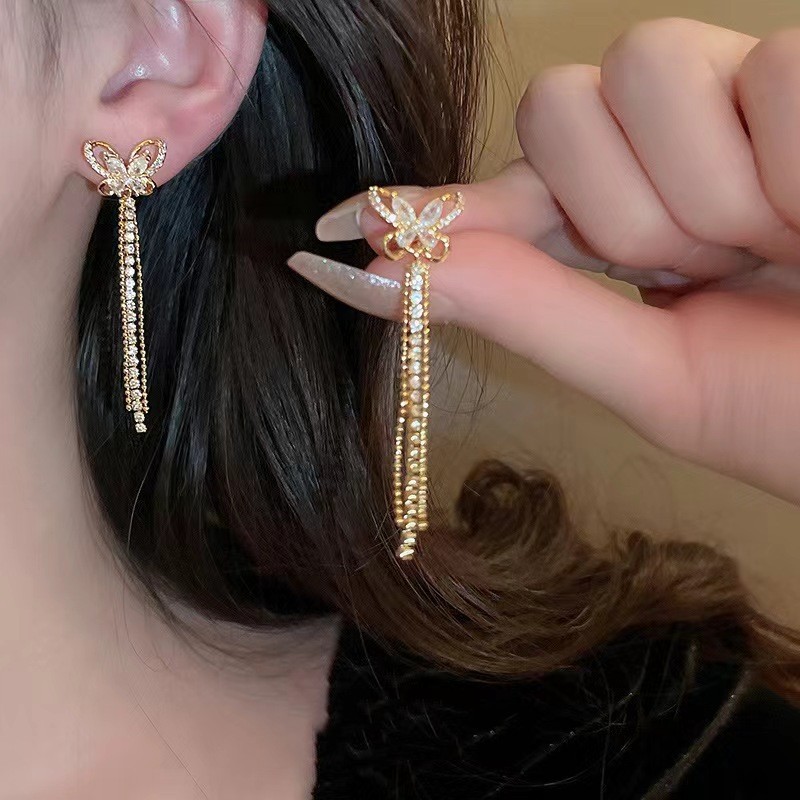 日韓の気質のバタフライのフリンジのイヤリングの女性のかわいい甘くて長いタイプのファッションのピアスの大衆の設計の高級感の耳飾り