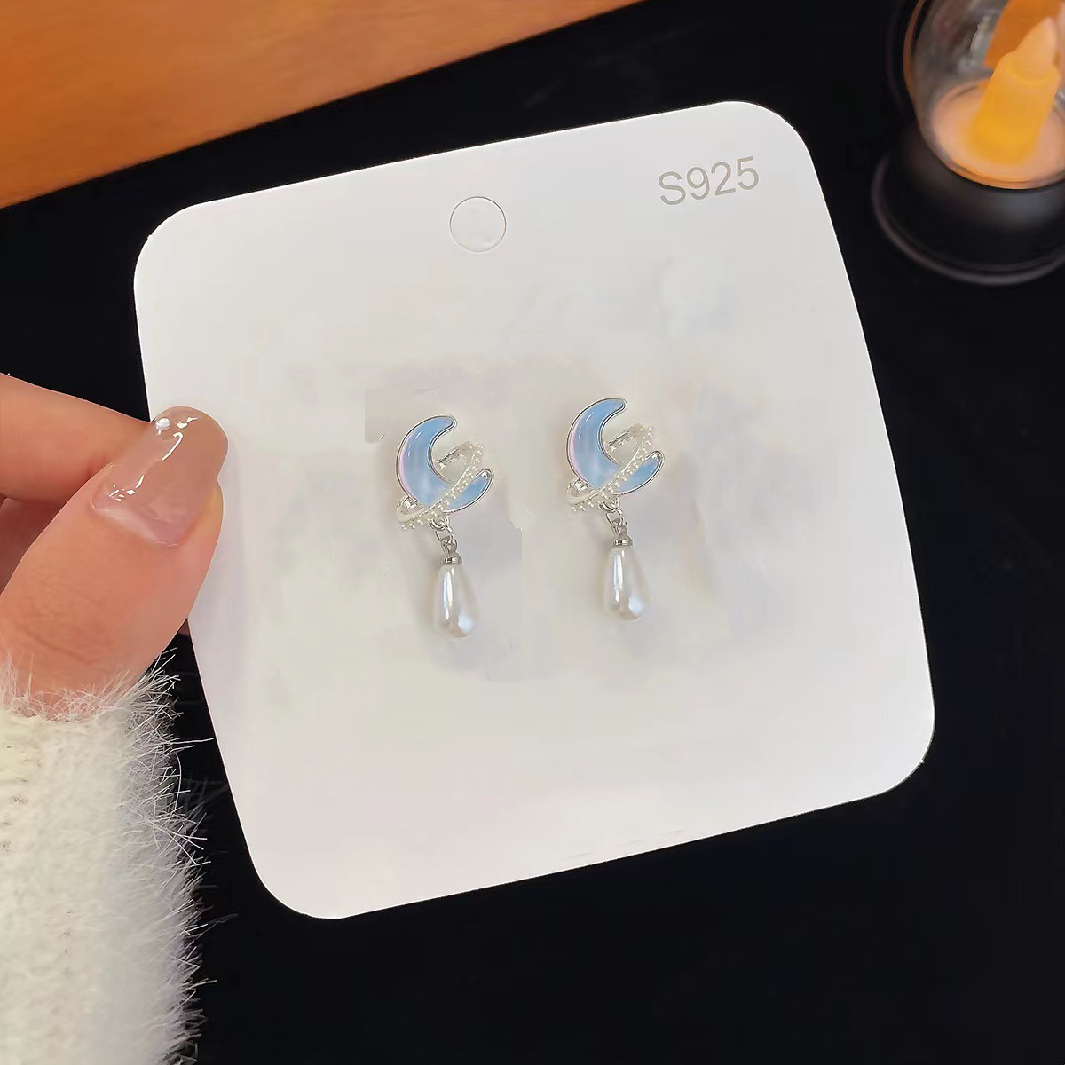 2024新型韓国式小清新極光ブルームーンイヤリング気質百合高級大衆デザイン感耳飾り