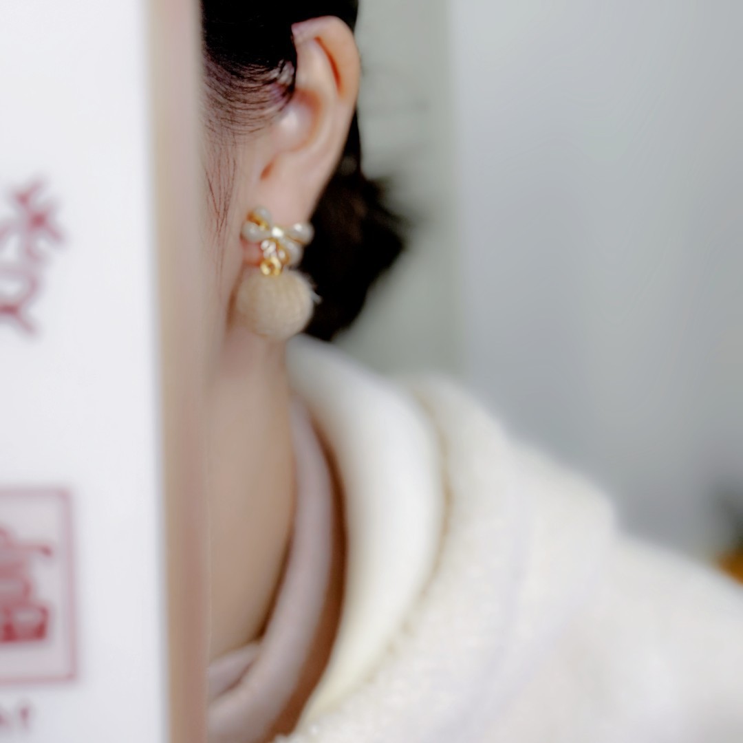 2024年の新年の新型の雪の毛玉のイヤリングの女性の秋冬の毛のイヤリングの赤い蝶結びのイヤリングのイヤリング