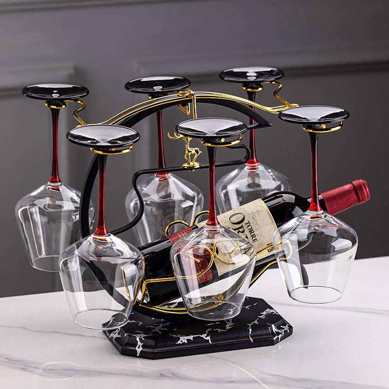 創意的なワインの杯の棚の置物のセットの新型の家庭用の高い足の杯の棚は酒の杯の棚の高級なワインの棚の酒の道具を逆さまに掛けます。
