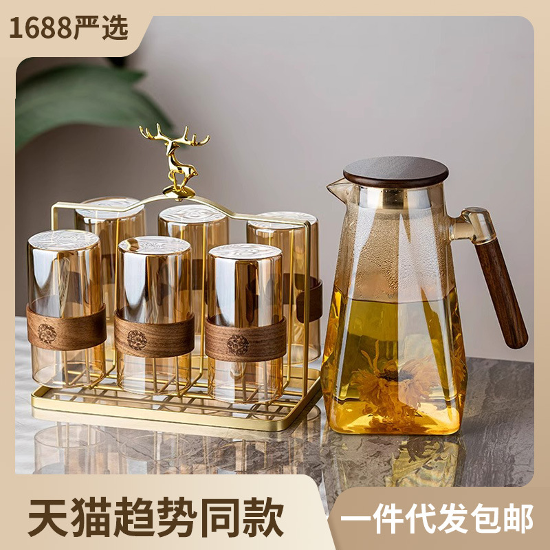 冷水ポット家庭用高颜値客間ガラスティーポット耐熱耐高温冷水ポットジュースポットセット