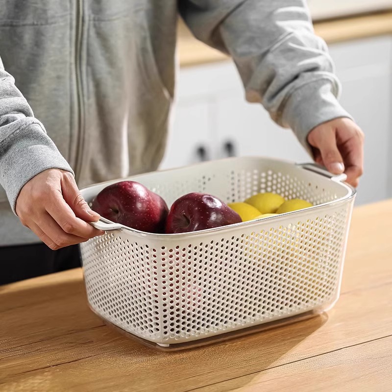 二層野菜洗い桶、水切りかご、キッチン野菜洗いかご、多機能軽量高級家庭用リビングルームフルーツトレイ
