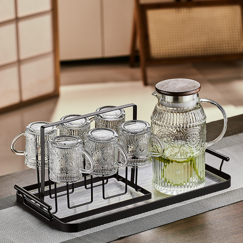 レトロ高颜値クリエイティブグラス家庭用テープカップ耐熱リビングルーム接客冷水ケトル水セット
