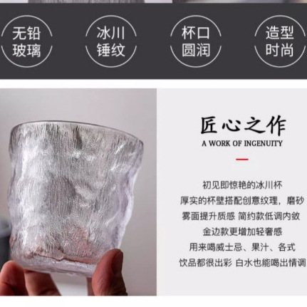 泡茶コップ家庭用厚手グラス高颜値ウイスキーグラス氷河紋ビールグラスジュース飲料カップ