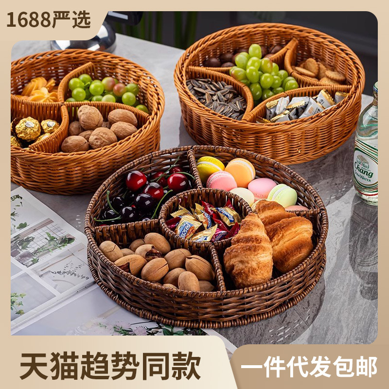 創意的な日本式の果物の皿の客間の家庭用分格のお茶の皿のお菓子のキャンディーの箱は藤の編みの乾燥する果物のかごのナッツの皿に似せます。