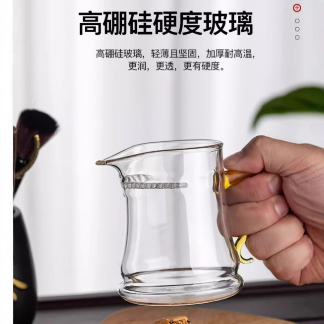 公道杯厚手ガラス耐熱透明泡茶フィルタリングカンフーティーアクセサリー茶海分茶器茶漏れセット