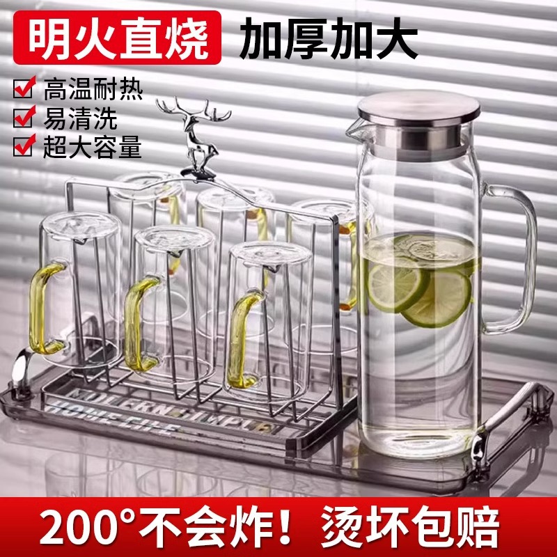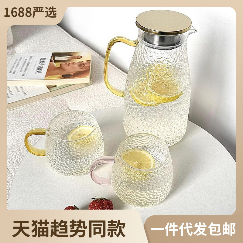 冷たい水筒ガラス耐高温ヨーロッパ式高颜値革新冷水水筒家庭用リビングルーム2024年新型茶水筒