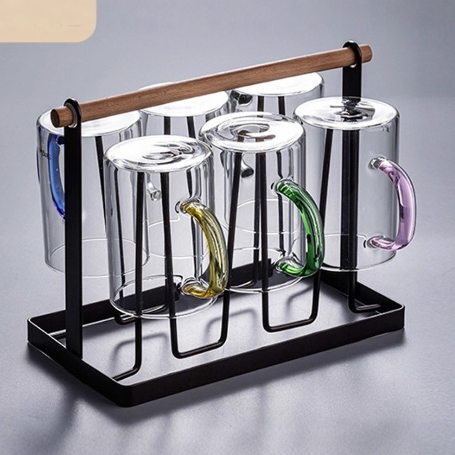 家庭用ウォーターカップ ガラスカップ ハンドル付き 耐熱カップ ガラスウォーターカップ ティーカップ カップホルダー付き ドリンクカップセット
