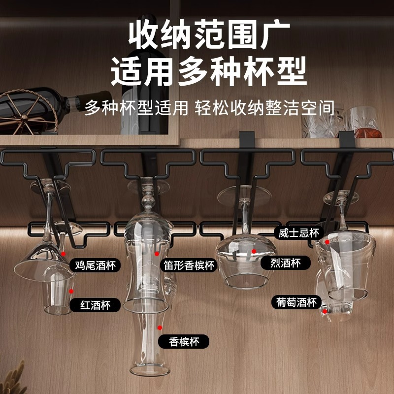 ワインカップホルダーは家庭用の穴を開けないワインラックのワインキャビネットの高足カップに掛けて収納します。