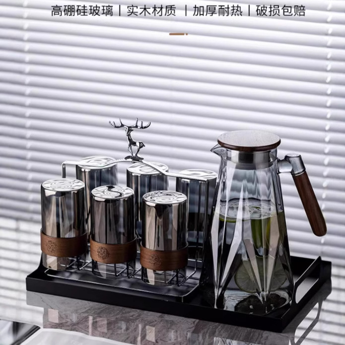 水差しセット、軽奢な家庭用リビングルーム冷水筒、新築祝い用カップセット、冷水筒、おもてなし用ティーカップ、ガラス製水差し、北欧風