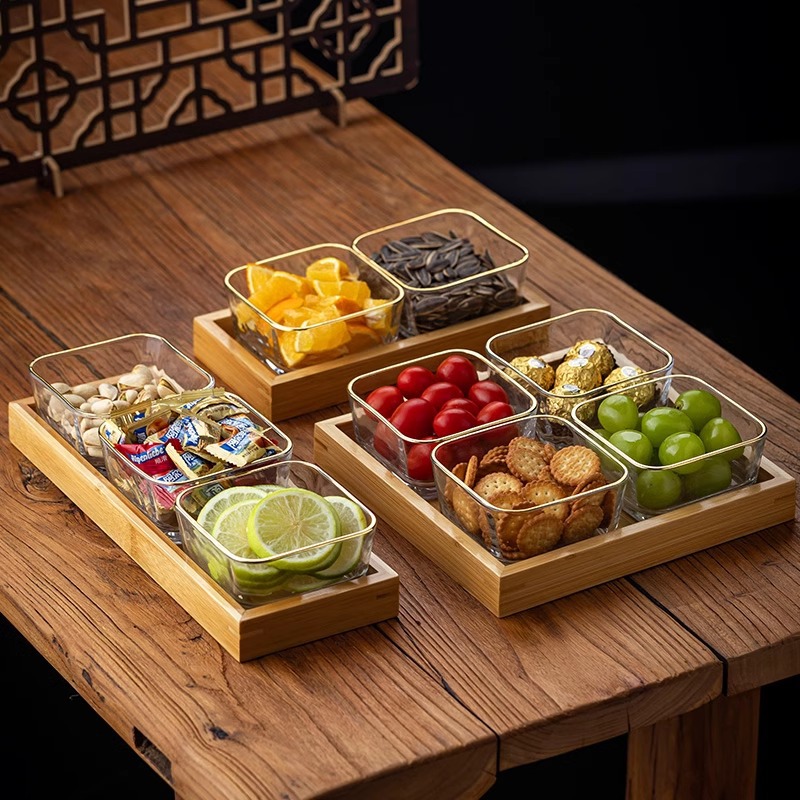 ガラス果物皿2023新型家庭用客間果物皿茶何乾果皿乾果箱軽贅沢方眼収納箱