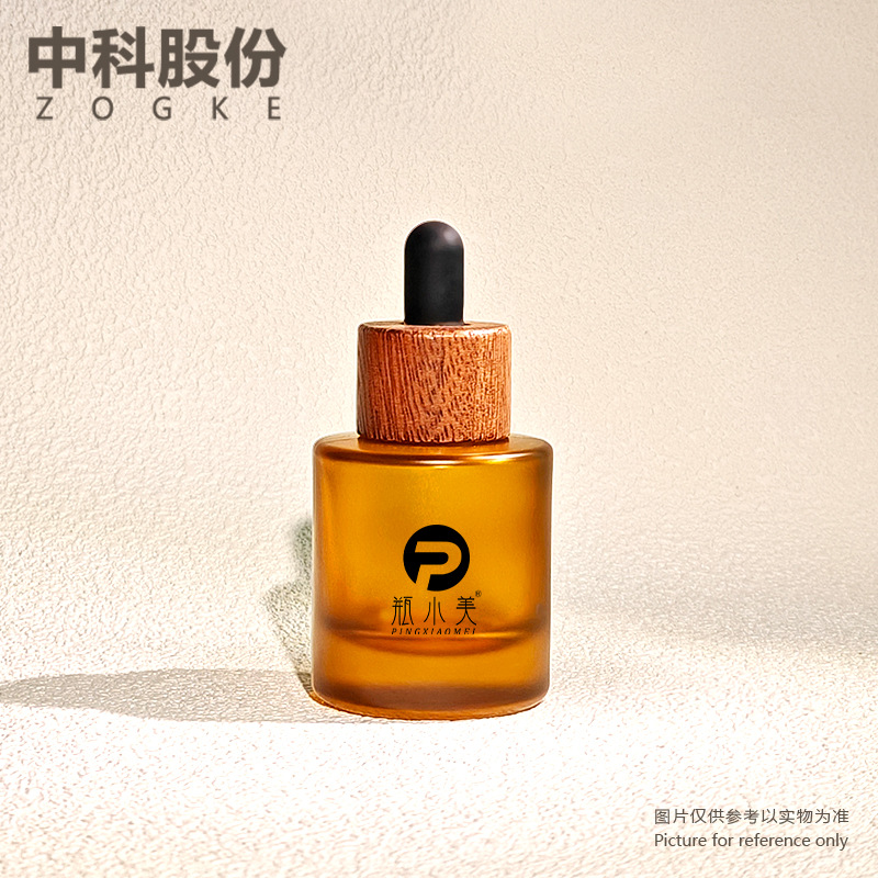 メーカー現物30ml厚い底茶色フロスト平肩瓶スポイト瓶ラベンダー精油精華液分注瓶