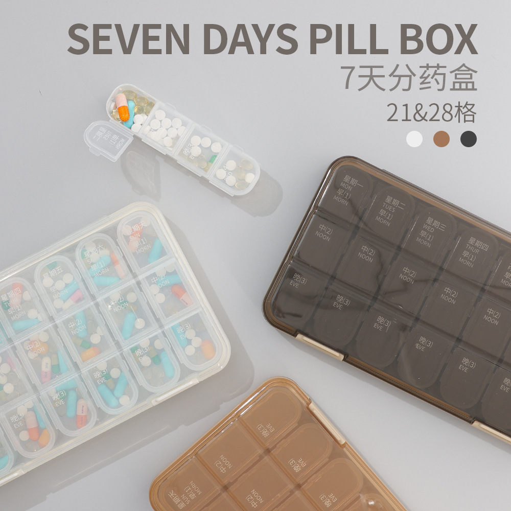 新型薬箱は週7日密封薬箱21格28格大容量携帯シンプル薬品分注箱にまたがる