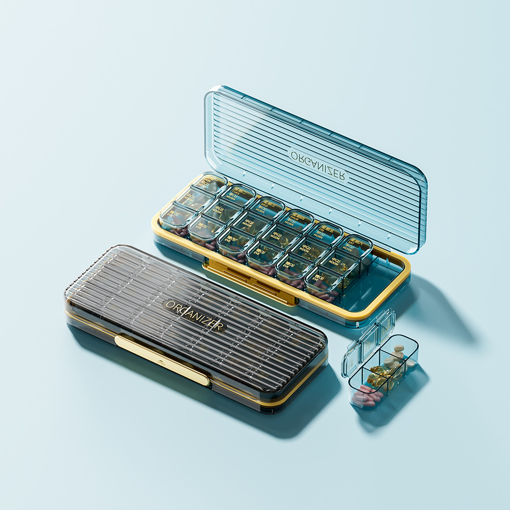 7日間の薬の箱は薬の器を分けて1週間収納して密封して湿気を防ぎます。