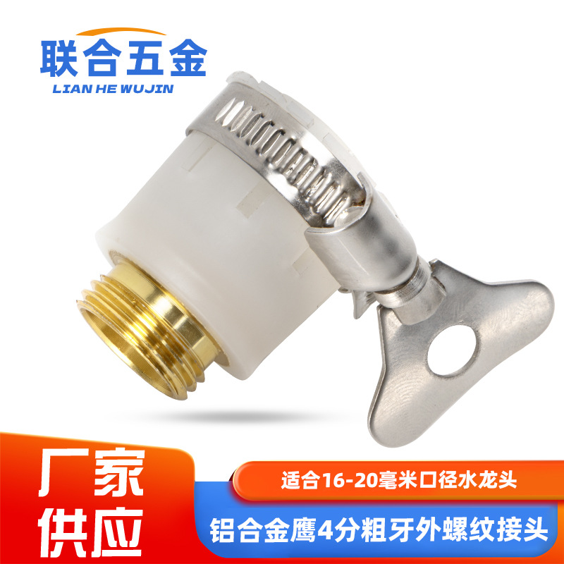 蛇口は4点銅メッキ全鋼クランプに接続、白いプラスチック8爪蛇口多機能コネクタ洗車水鉄砲部品