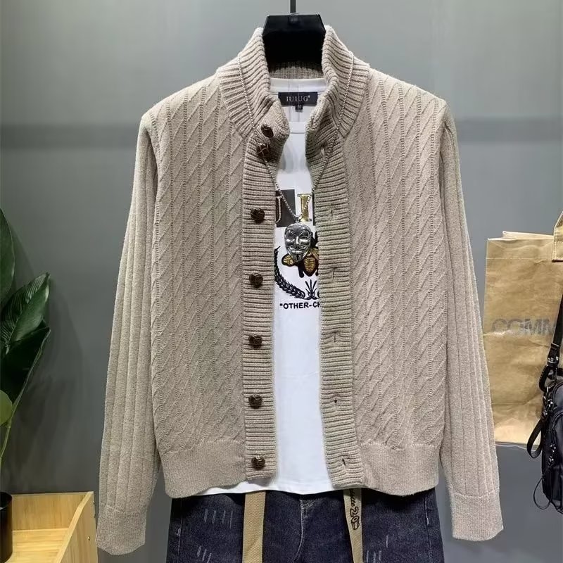 男性は純色の韓国版セーターをめくって、秋冬の青年の大きいサイズに合わせてファッションのニットの格好いいカーディガンを着ます。