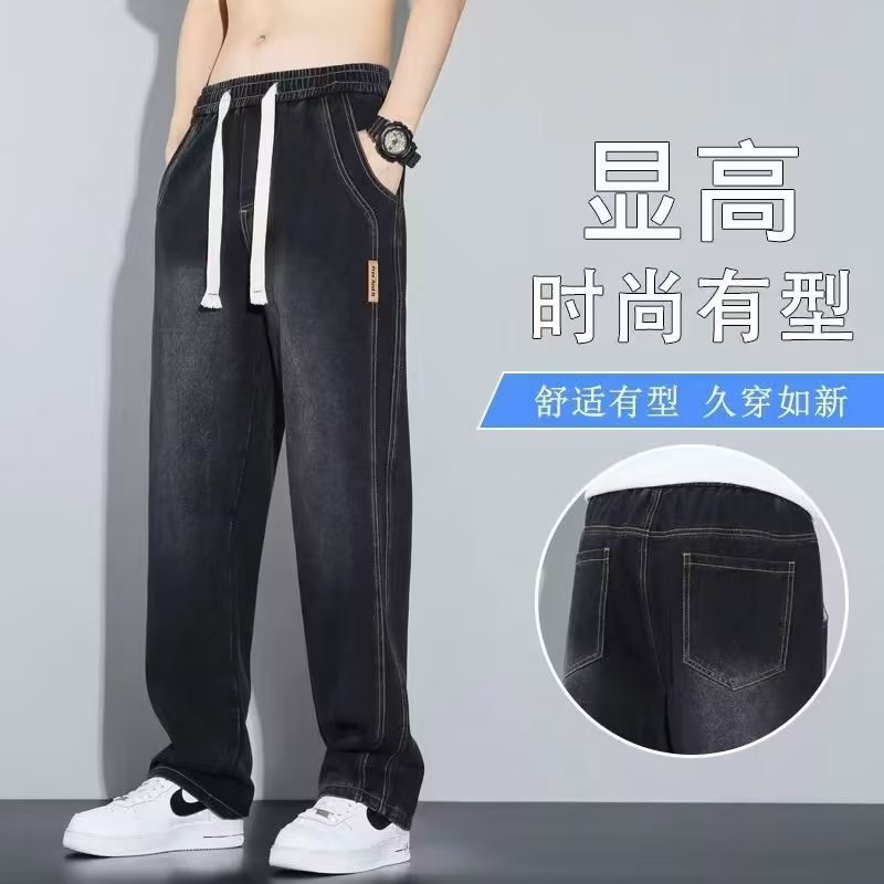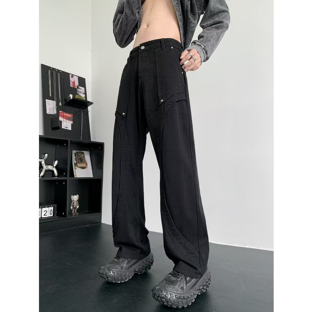 黒いジーパンの高い街のアメリカ式の夏の直筒のゆったりしている微ラッパのズボンのごろつきのかっこいい高級感のズボンの男性のタイプ