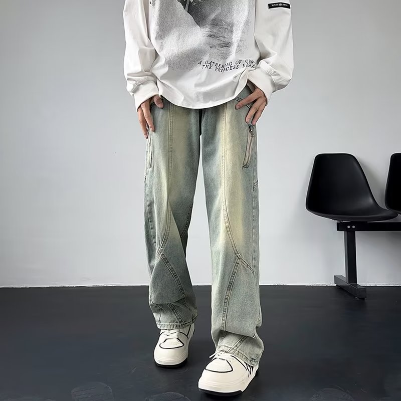 レトロな水洗いのジーパンの男性の2023秋の潮のブランドのまっすぐな筒はゆったりとしています。