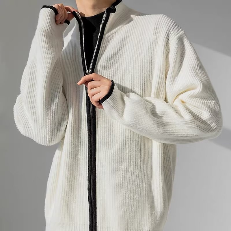 カーディガンのセーターのコートの男性2023春と秋の新型の軽い熟風の男性服のファスナーのニットの男性は上着を着ます。