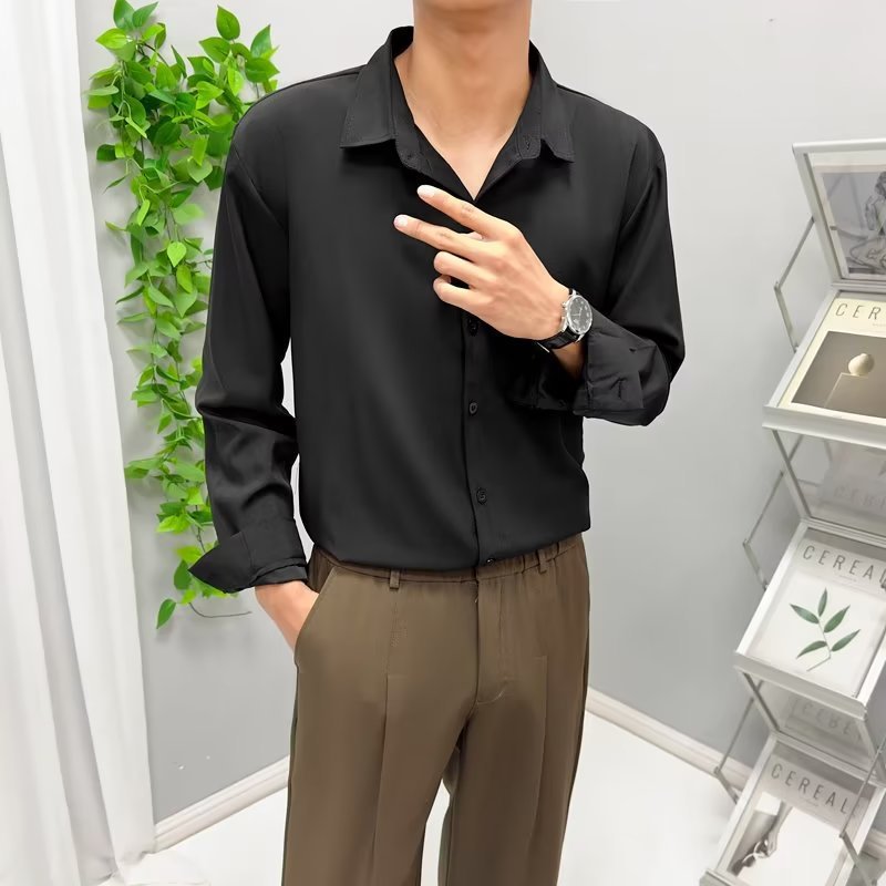 白いシャツの男性の長袖の高級感の2023春と秋の新型のしわに抵抗します。